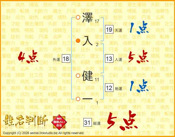 澤入健一さんの総運は31画の5点!