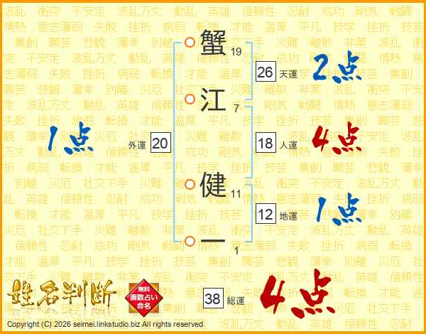 蟹江健一さんの総運は38画の4点!