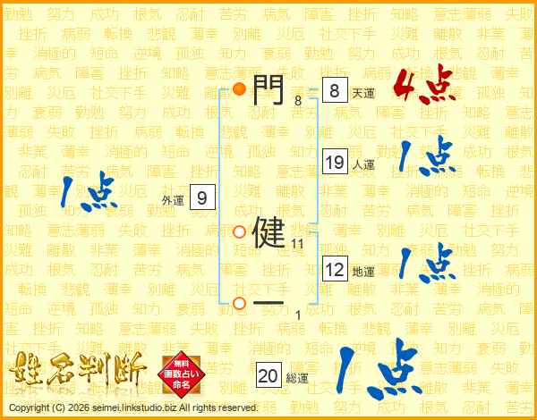 門健一さんの総運は20画の1点!