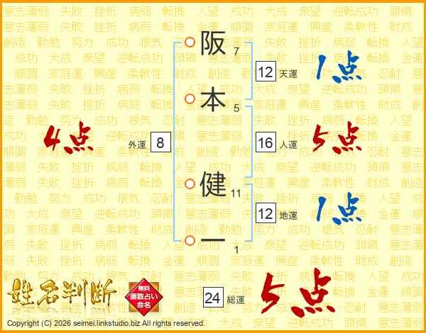 阪本健一さんの天運は12画の1点!