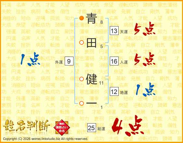 青田健一さんの総運は25画の4点!