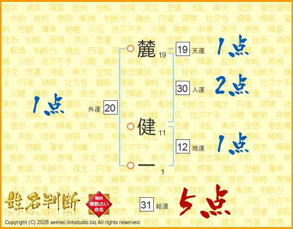 麓健一さんの総運は31画の5点!