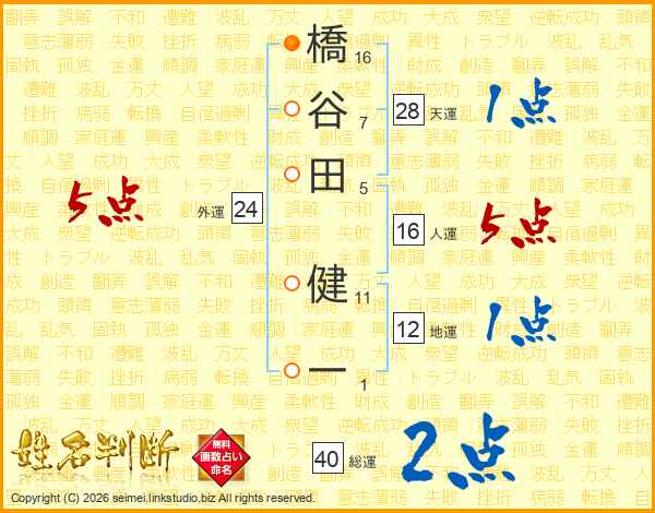 橋谷田健一さんの人運は16画の5点!