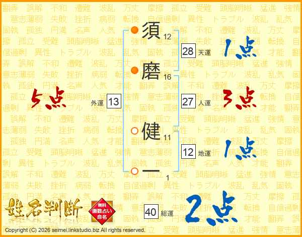 須磨健一さんの総運は40画の2点!