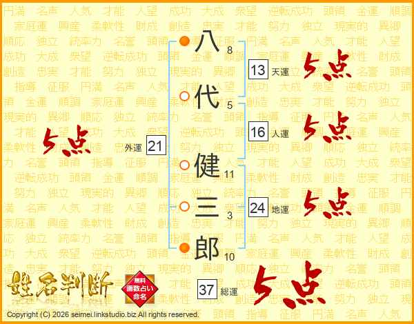 八代健三郎さんの天運は13画の5点!