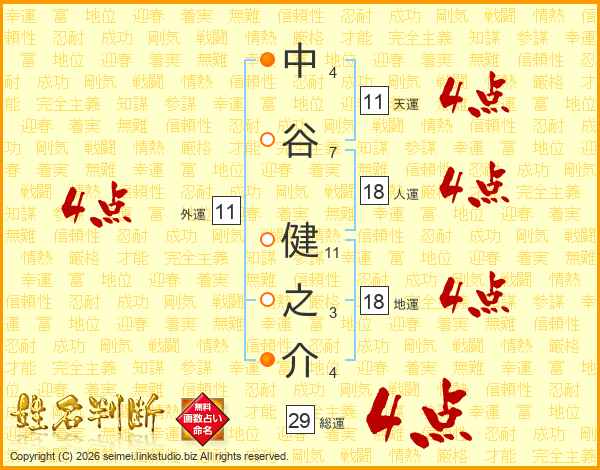 中谷健之介さんの天運は11画の4点!