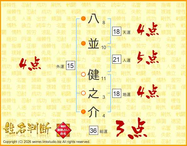 八並健之介さんの総運は36画の3点!