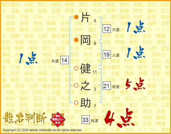 片岡健之助さんの総運は33画の4点!