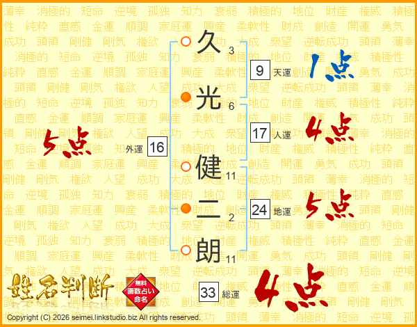 久光健二朗さんの総運は33画の4点!