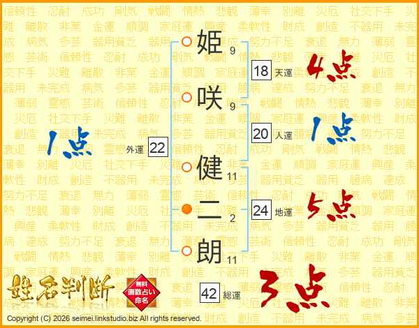 姫咲健二朗さんの総運は42画の3点!
