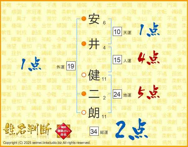 安(6画)井(4画) 健(11画)二(2画)朗(11画)