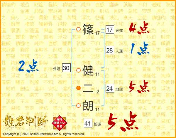 篠健二朗さんの総運は41画の5点!