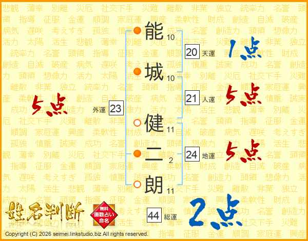 能城健二朗さんの総運は44画の2点!