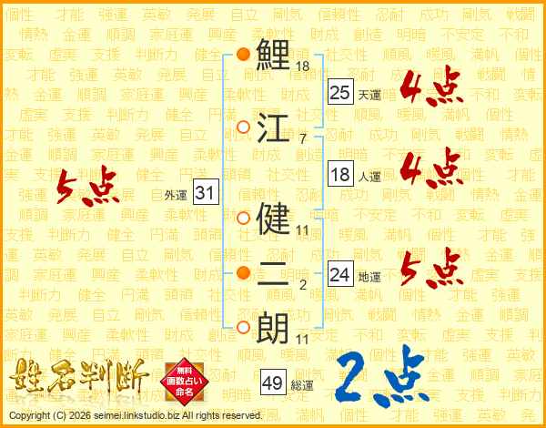 鯉江健二朗さんの天運は25画の4点!