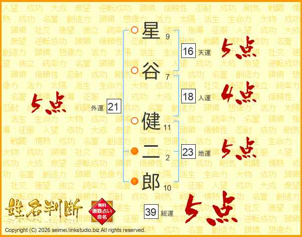 星(9画)谷(7画) 健(11画)二(2画)郎(10画)