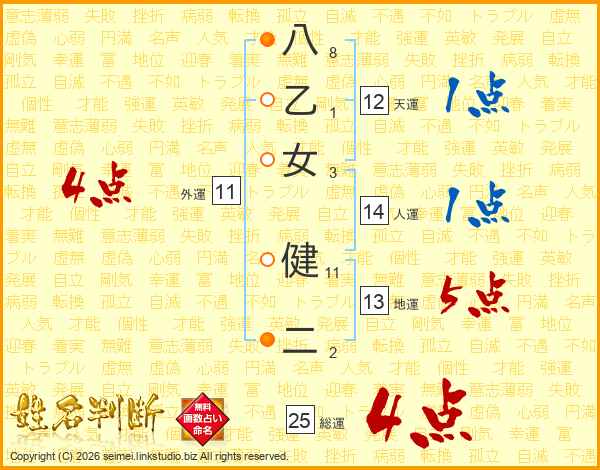 八乙女健二さんの総運は25画の4点!