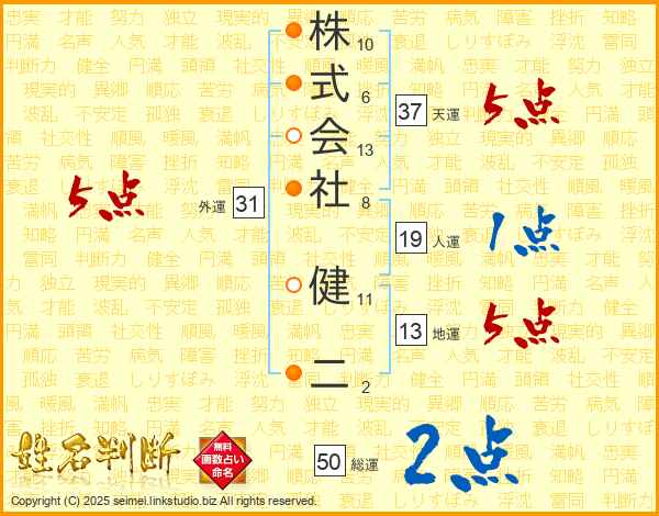 株式会社健二さんの総運は50画の2点!