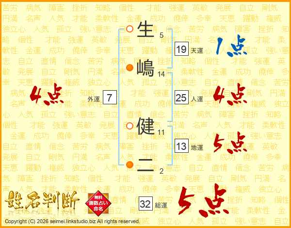 生嶋健二さんの総運は32画の5点!