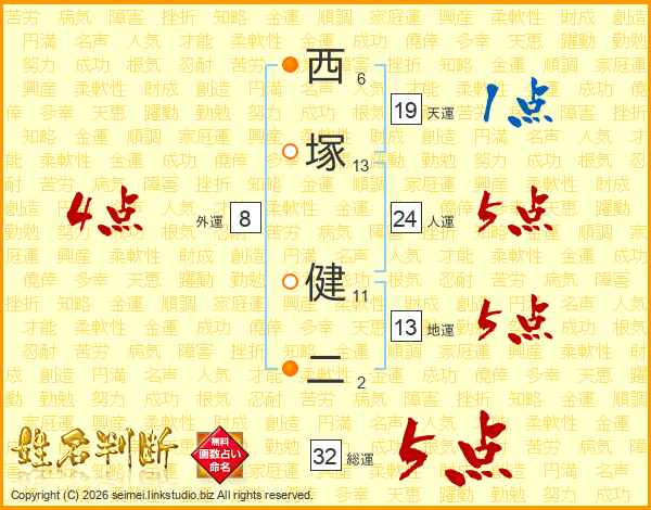 西塚健二さんの総運は32画の5点!