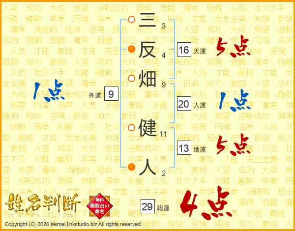 三反畑健人さんの総運は29画の4点!