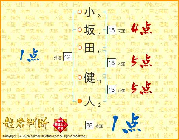 小坂田健人さんの総運は28画の1点!