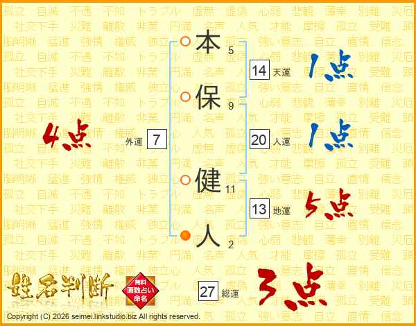 本保健人さんの総運は27画の3点!