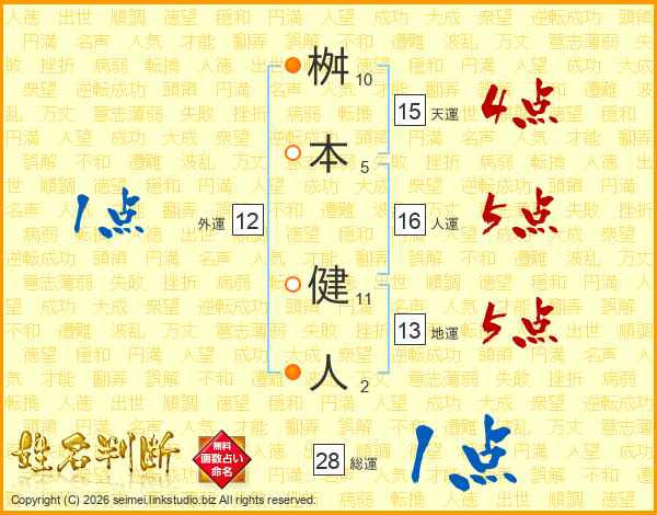 桝本健人さんの天運は15画の4点!