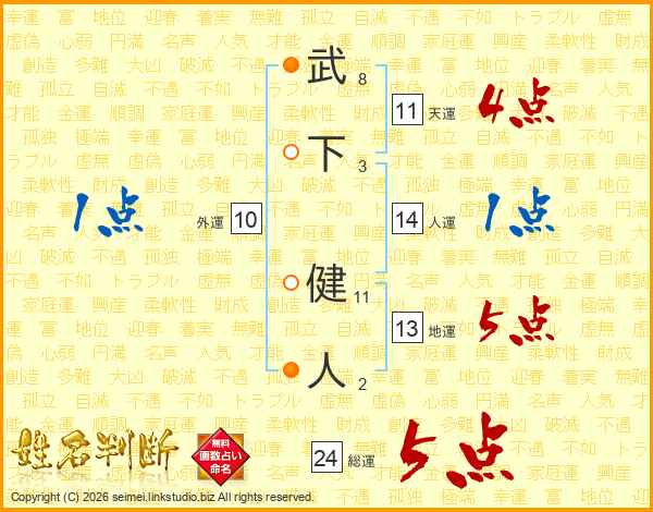 武下健人さんの天運は11画の4点!