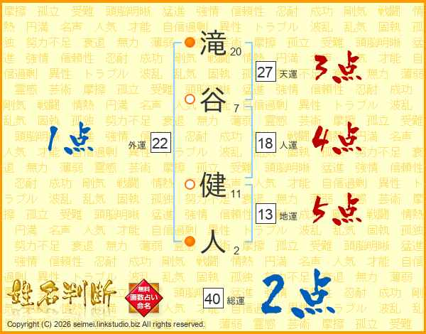 滝谷健人さんの総運は40画の2点!