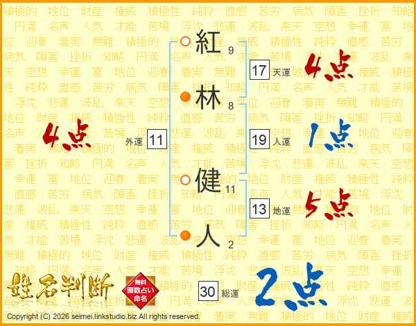 紅林健人さんの天運は17画の4点!