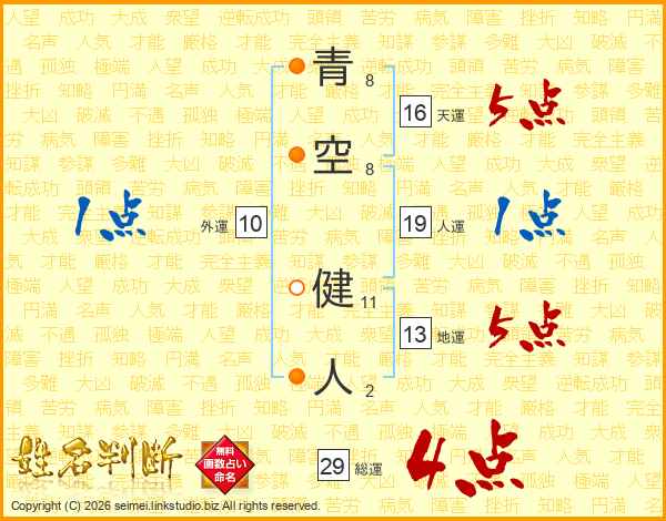 青空健人さんの総運は29画の4点!