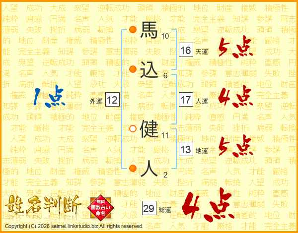 馬込健人さんの人運は17画の4点!