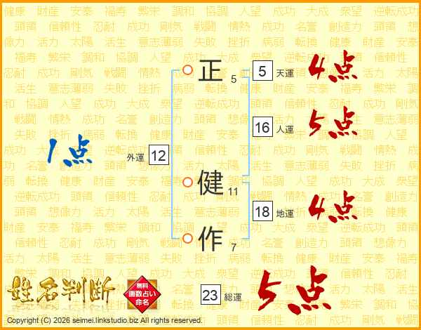 正(5画) 健(11画)作(7画)