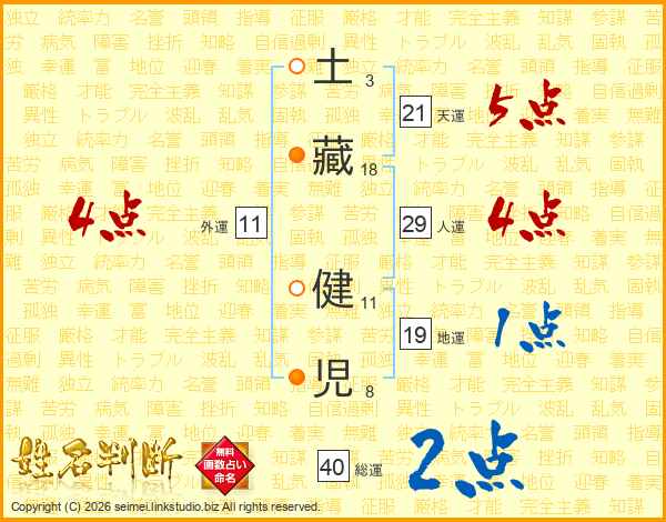 土藏健児さんの総運は40画の2点!
