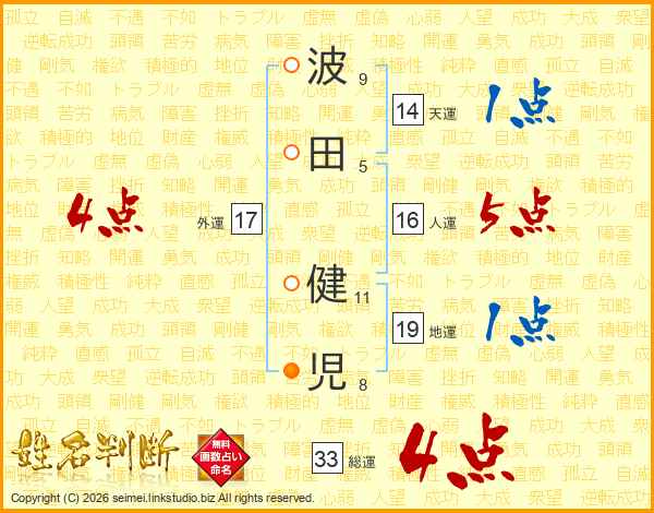 波田健児さんの総運は33画の4点!