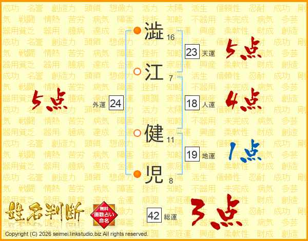 澁江健児さんの総運は42画の3点!