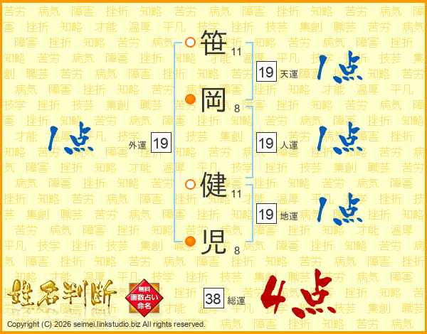笹岡健児さんの総運は38画の4点!