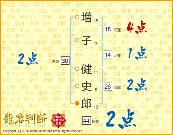 増子健史郎さんの地運は26画の2点!