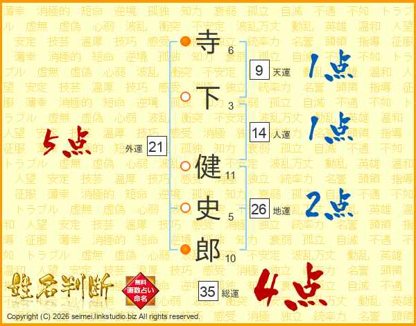 寺下健史郎さんの地運は26画の2点!