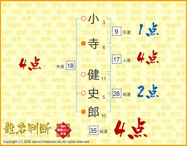 小(3画)寺(6画) 健(11画)史(5画)郎(10画)