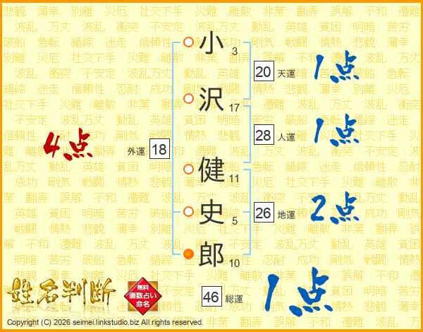 小沢健史郎さんの天運は20画の1点!