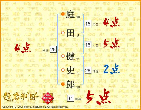庭田健史郎さんの総運は41画の5点!