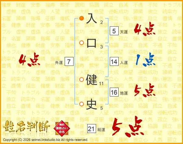 入口健史さんの総運は21画の5点!
