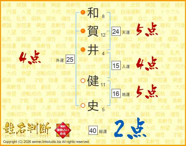 和賀井健史さんの天運は24画の5点!