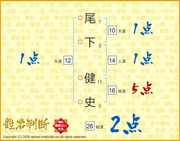 尾下健史さんの総運は26画の2点!
