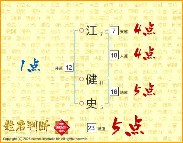 江健史さんの総運は23画の5点!