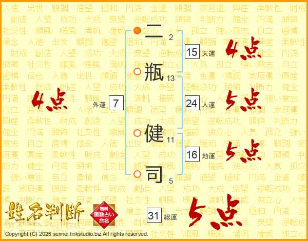 二瓶健司さんの総運は31画の5点!