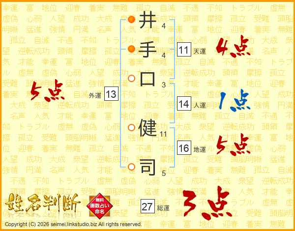 井(4画)手(4画)口(3画) 健(11画)司(5画)