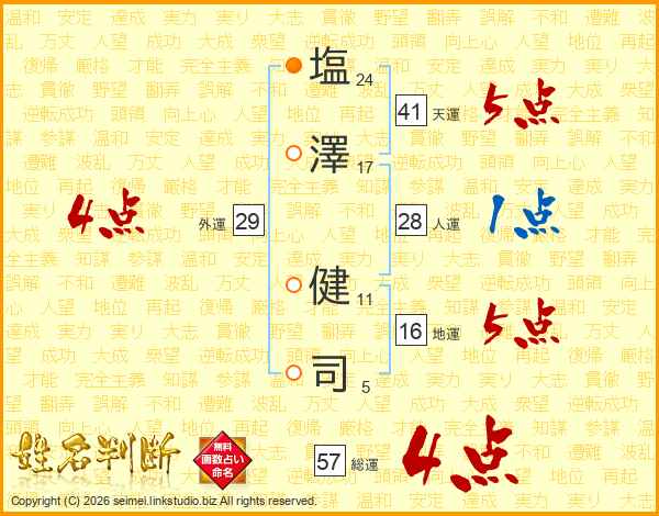 塩澤健司さんの総運は57画の4点!