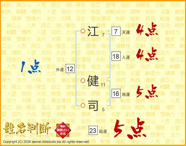 江(7画) 健(11画)司(5画)
